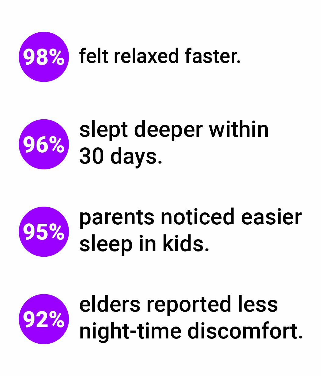 Most users notice relaxation and improved calmness from the very first application. However, consistent use over 3–4 weeks delivers deeper, long-lasting improvements in sleep quality and overall well-being.